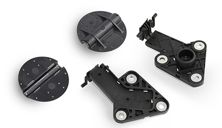 Components for windscreen and headlight cleaning systems, pump casings, spray nozzles, combination elements connection pieces socket housings Materials used: |